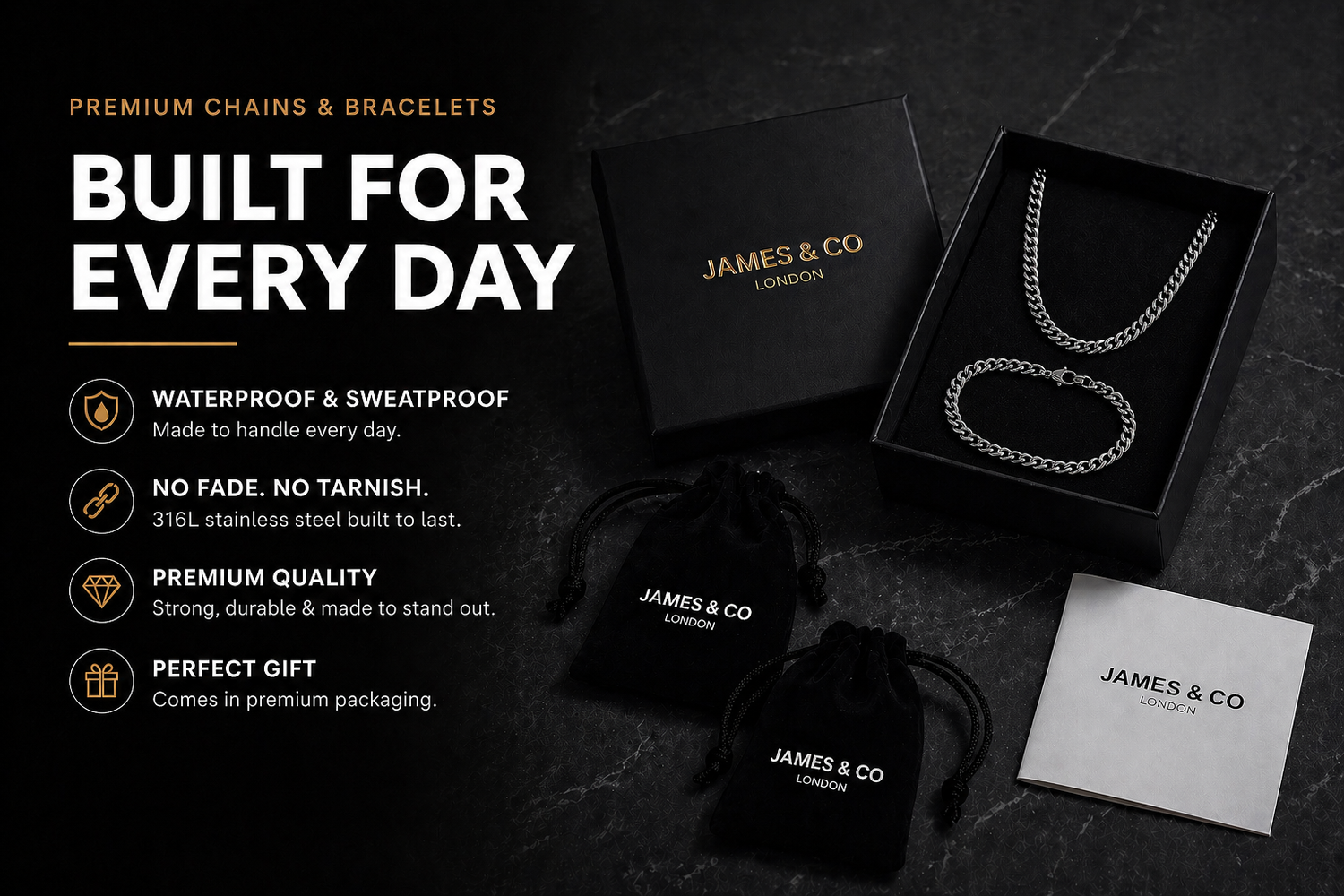 316L stainless steel, waterproof, sweatproof, made to last. Trusted by 1000s across the UK.