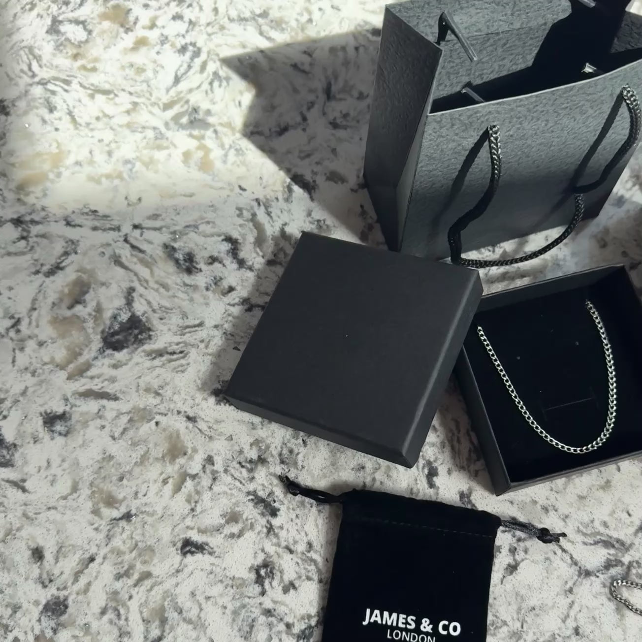This 3mm silver Cuban Chain & Bracelet Gift Set is crafted for those who appreciate bold simplicity and everyday style. Presented in a premium James & Co London pouch, with an optional gift box and bag, it’s the perfect present for birthdays, celebrations, or just because. Whether it’s a gift for him or yourself, this matching set offers a sleek, polished look that elevates any outfit.